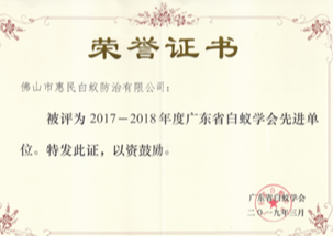 2017-2018年度廣東省白蟻學(xué)會(huì)先進(jìn)單位