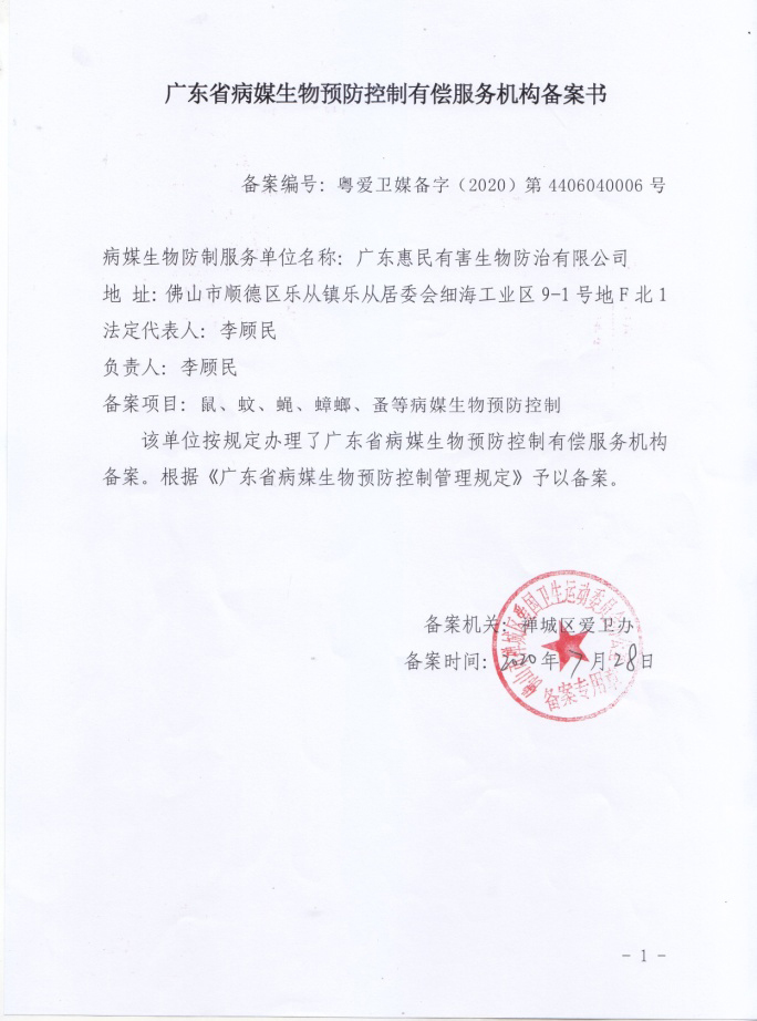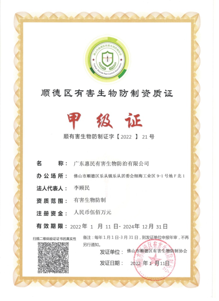 有害生物防制資質(zhì)甲級(jí)