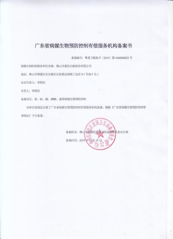 病媒生物預(yù)防控制機(jī)構(gòu)備案書